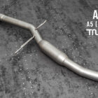 High-performance TNEER exhaust system for the Audi A5(B9) 2.0T, inclusive of front pipe, mid pipe, and rear mufflers. Enhanced with an electronic valvetronic system and dual silver tips. Integrated with the TNEER App Control System (TACS) for advanced in-cabin exhaust control.