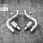 Improve the performance of your Ferrari F12 Berlinetta with our top-tier downpipes. Our catless variant offers a raw exhaust tone, while the sport variant is equipped with a 200-cell catalytic converter to strike a balance between power and emissions.