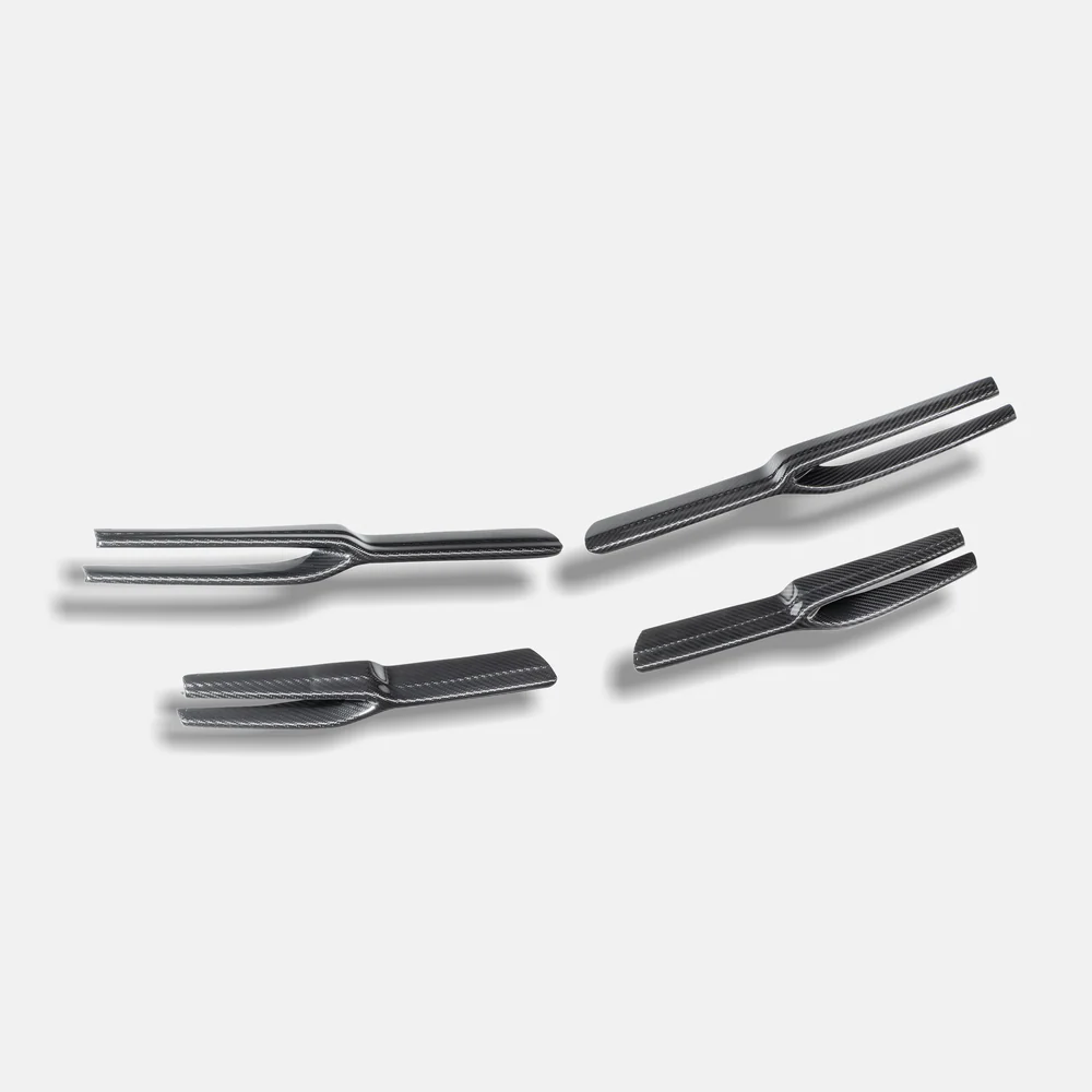 Manufactured from premium pre-preg carbon fiber, the grill forks offer excellent strength-to-weight characteristics while maintaining durability under varying road and climate conditions. The exposed carbon weave is finished with a UV-resistant high-gloss clear coat, ensuring long-lasting protection against fading and environmental exposure.