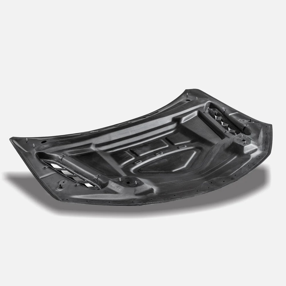 Constructed from high-quality pre-preg carbon fiber, the hood offers exceptional strength-to-weight performance, significantly reducing weight compared to the factory steel or aluminum panel. The integrated vent design promotes improved heat extraction from the engine compartment, helping manage temperatures during spirited driving and high-performance conditions.