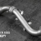 The TNEER Quantum Ceramic Titanium Race Exhaust for the McLaren 650S (2014-2017) is a premium, non-valvetronic exhaust system designed specifically for the 3.8L Twin-Turbocharged V8 engine. This Titanium Special Edition system enhances the vehicle’s performance and acoustic profile. It features a robust and lightweight titanium construction with elegant quad titanium plating tips, offering a blend of style and performance that complements the McLaren 650S’s dynamic capabilities.