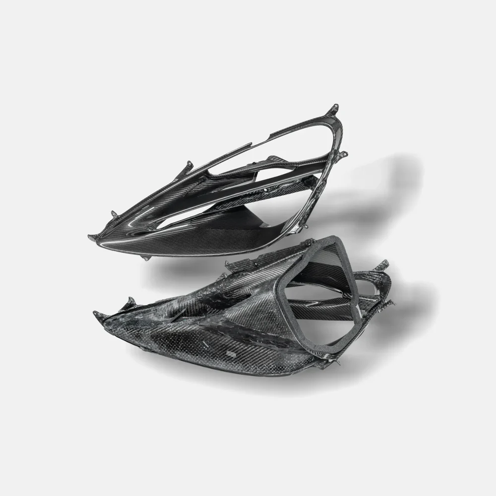 Whether you’re preparing your McLaren for show, track, or spirited street use, these carbon fiber headlight surrounds elevate both the style and presence of the vehicle while maintaining factory-level precision fitment and finish.