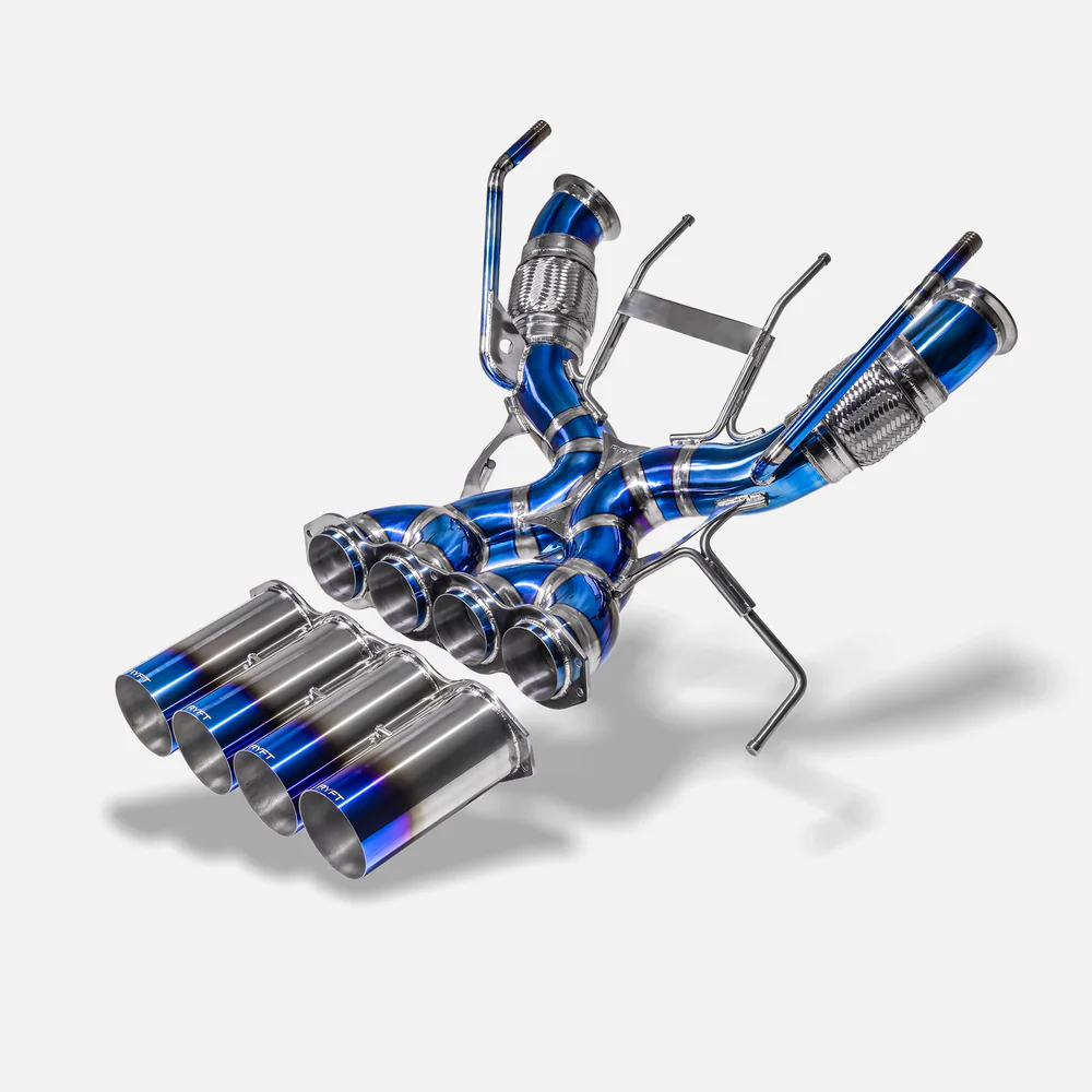 Crafted from 100% high-grade titanium, this RYFT exhaust system delivers significant weight reduction compared to the factory exhaust, helping improve overall vehicle balance and responsiveness. The lightweight construction also helps reduce unsprung mass, contributing to improved handling dynamics.