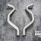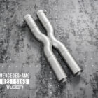The TNEER Performance Exhaust System for the Mercedes-AMG R231 SL63 is engineered to deliver a superior exhaust note and performance. This system includes a Mid X-Pipe and Rear Mufflers with Electronic Valves (EV), complemented by the TNEER App Control System (TACS) for sound customization. Note that installation requires modification of the OEM exhaust system.
