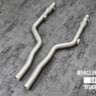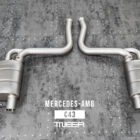 The TNEER Performance Exhaust System for the Mercedes-AMG W205 C43 is meticulously designed to deliver a superior exhaust note and improved performance. This system includes a Front Pipe, Mid X-Pipe, and Rear Mufflers with Electronic Valves (EV), all enhanced by the TACS (TNEER App Control System) for in-cabin sound control, providing a perfect blend of aggression and sophistication for the 3.0L Twin-Turbocharged V6 engine.