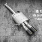 The TNEER Performance Exhaust System for the Mini R56/R57/R58 Cooper S is engineered to elevate the vehicle’s acoustic and performance characteristics. This system includes a Front Pipe, Mid Pipe, Rear Mufflers with EV, and Dual Silver Tips. The integration of TACS (TNEER App Control System) allows for in-cabin control of the exhaust valves, offering a customizable driving experience.