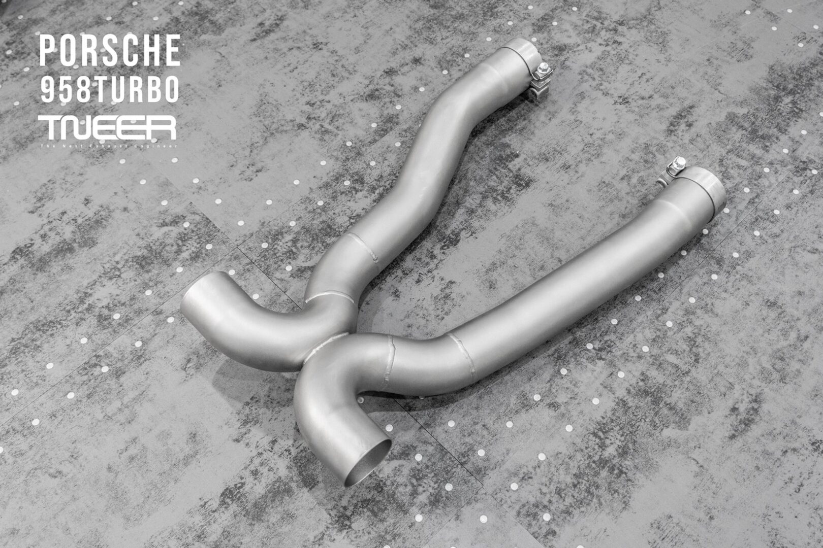 The TNEER Performance Exhaust System for the Porsche 958.1 Cayenne Turbo (2011-2014) is meticulously designed to elevate the vehicle’s performance and acoustic profile. This system includes a Front Pipe, Mid X Pipe, Rear Mufflers with EV, and Quad Silver Tips, complemented by the TACS (TNEER App Control System) for enhanced control and customization. It’s tailored to fit the 4.8L Twin-Turbocharged V8 engine, offering a significant upgrade in sound and efficiency.