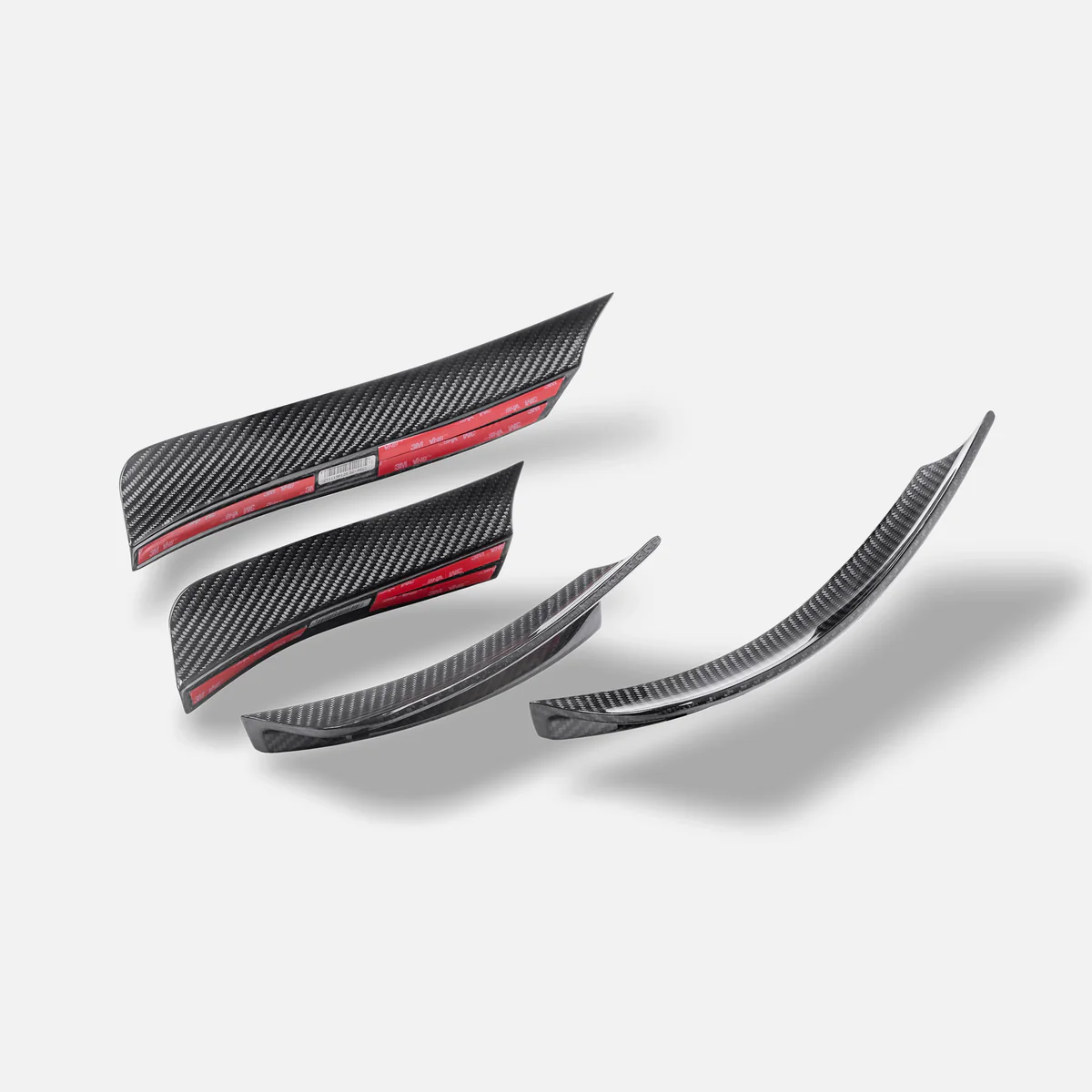 Manufactured using premium pre-preg carbon fiber, these dive planes offer exceptional strength and lightweight performance. The precision-engineered canards help guide airflow along the sides of the vehicle, increasing front-end grip and stability at higher speeds — making them a perfect addition for both track enthusiasts and aggressive street builds.