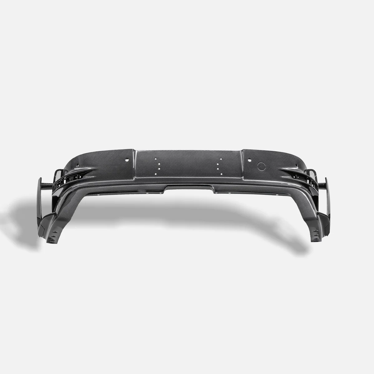 Constructed from premium pre-preg carbon fiber, the bumper center with integrated side fins combines lightweight performance with exceptional strength. The aerodynamic fins help guide airflow from the rear diffuser and reduce turbulence, enhancing high-speed stability and downforce.