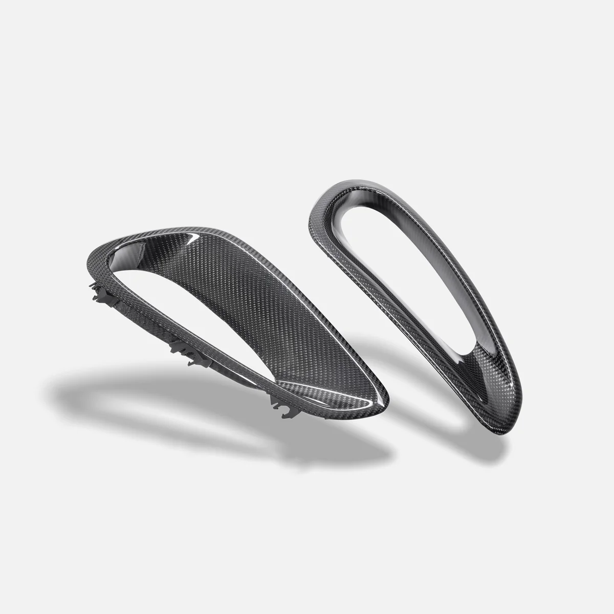 Manufactured from premium pre-preg carbon fiber, the side intakes provide exceptional strength while remaining lightweight. Their aerodynamic design helps channel airflow more efficiently along the sides of the vehicle, contributing to improved cooling and optimized aerodynamic performance during high-speed driving.