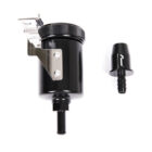 Oil level measurement in the can is via a beautiful billet dip stick = avoiding the clear plastic level window that discolours rapidly on some catch cans. Emptying is simply via drain port supplied complete with blanking plug and nitrile rubber o-ring = no need to disconnect the pipework to measure or empty the can.